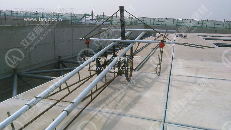 鋼骨架輕型板適用于輸煤棧橋、公共民用等建筑圍護屋面、樓面、墻面.鋼骨架輕型板由輕型鋼骨架、冷拔鋼絲網(wǎng)、改性水泥珍珠巖復合芯材(專有技術)、復合抗?jié)B耐磨涂層(專有技術)組成.鋼骨架輕型板集輕質(zhì)、承重、節(jié)能、防火、隔聲、泄爆、抗震等功能于一體,既保持了傳統(tǒng)鋼筋混凝土構件安全度高、使用壽命長的優(yōu)點,又滿足了現(xiàn)代建筑對輕質(zhì)、節(jié)能、環(huán)保的要求。